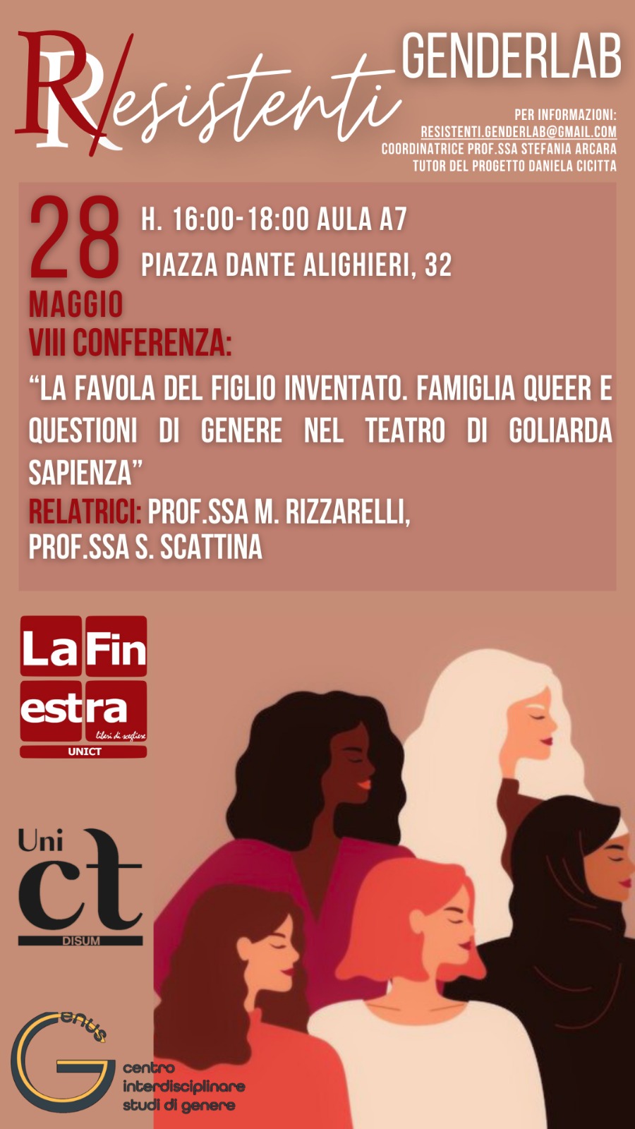 La prossima (e penultima) Conferenza del ciclo R/esistenti - GenderLab si terrà martedì 28 maggio 2024, ore 16.00-18.00 in Aula A7 del Dipartimento di Scienze Umanistiche di Unict (Monastero dei Benedettini, Piazza Dante, Catania).