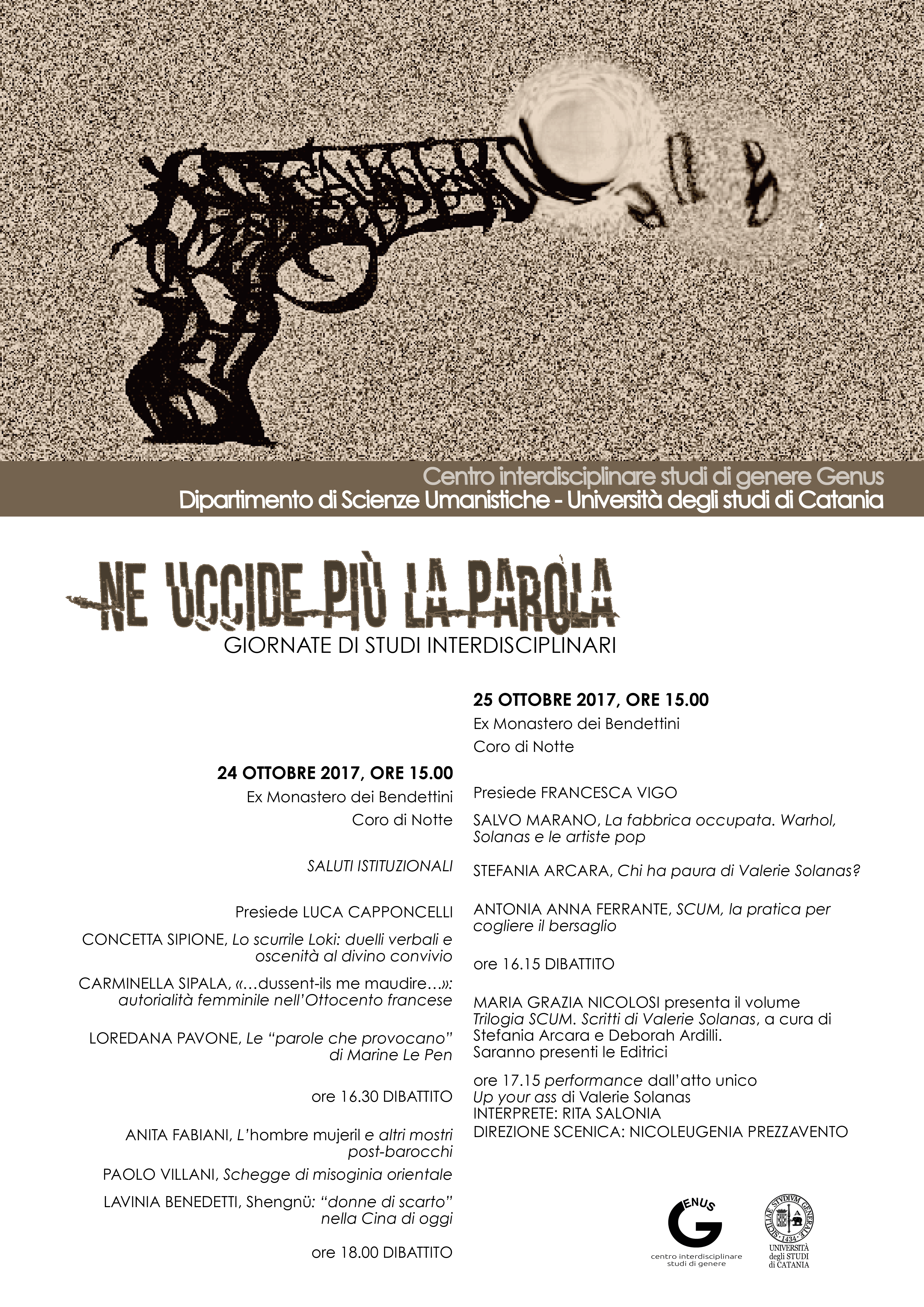 Giornate di studio interdisciplinari "Ne uccide più la parola" - 24-25 ottobre 2017 - Dipartimento di Scienze Umanistiche - Coro di Notte, ex-Monastero dei Benedettini